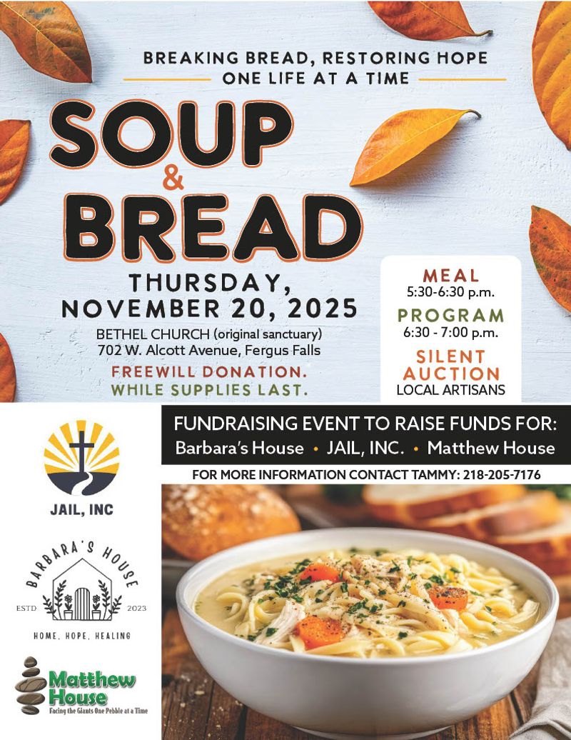 Thank you for visiting the JAIL Inc. website. Our mission is to bring the Good News of God's love to the inmates at the Otter Tail County detention facility. Our Chaplain Peter Konrad, has a heart and love for those incarcerated and who are in need of the redemptive Grace of Jesus. Thank you for your continued prayers and financial support of this ministry.